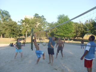 We played volleyball again this weekend, but this time we played on Saturday at 5:30pm instead of Sunday at 3:30pm. It was a lot cooler that way and also there wasn't as much competition from other teams for the nets.