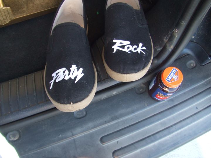 My costume stayed together pretty well, except the cut-out letters on the shoes kept coming off. Oh well, nothing a little rubber cement can't fix.