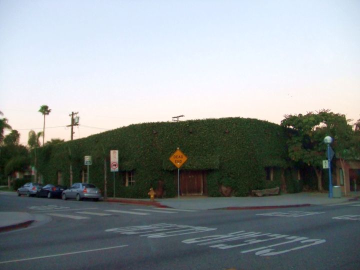 Neat building covered in vegetation.