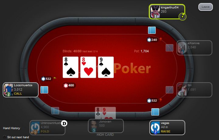 Thankfully it says under your cards what you have, so at least if you make a straight or flush, you know it. I just don't know how big my flush is.