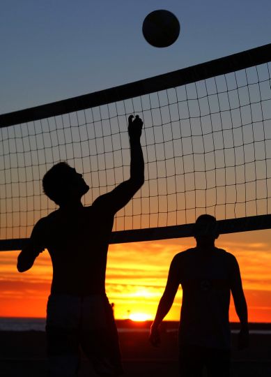Serving. I like how she's up on her tiptoes to get a little extra height.
