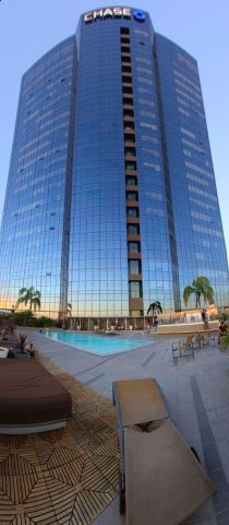 A slightly wider panorama which includes the pool and lounge area.