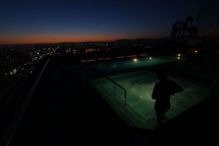 Friday night RJ invited us to the 1100 Wilshire Sky Deck. The office I work at on Thursday is the white one right behind me. If we lived here, I could zipline to work.
