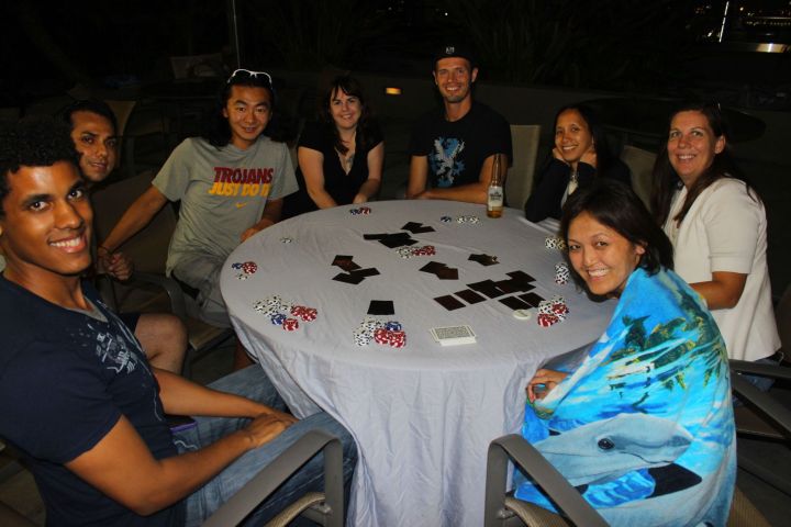 Playing poker in the BBQ area.
