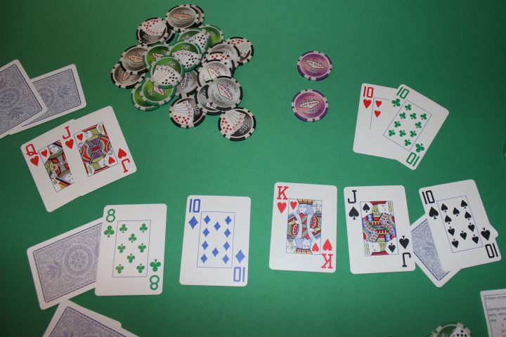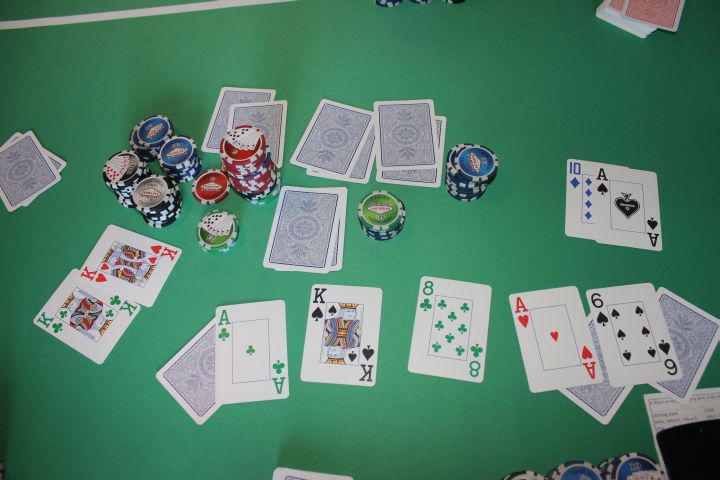 Sunday night was poker at our place. This was one of the first hands at my table. They got it all in on the turn and three aces was beaten by a full house.