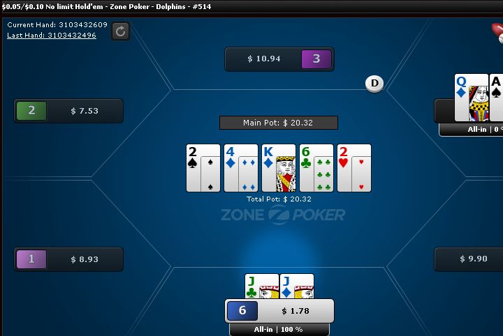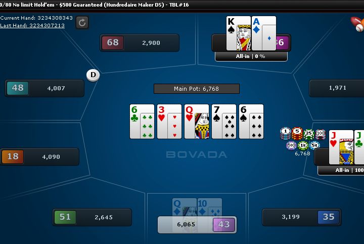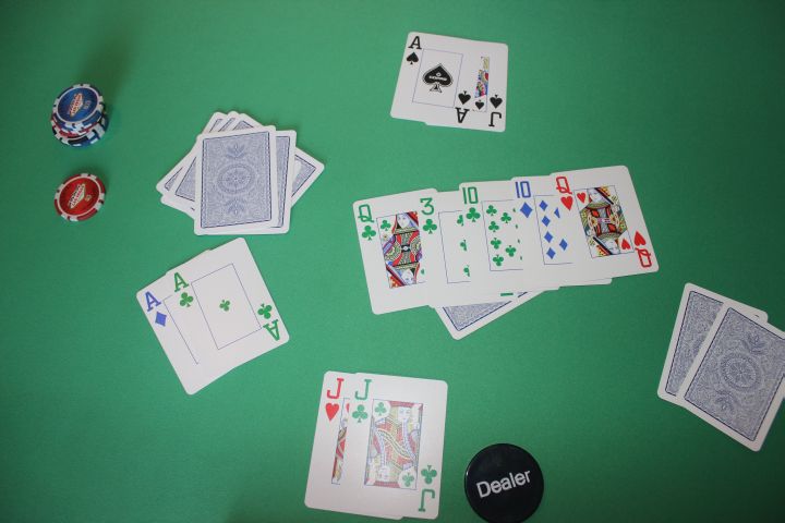 A three-way all-in: AA vs JJ vs AJ.