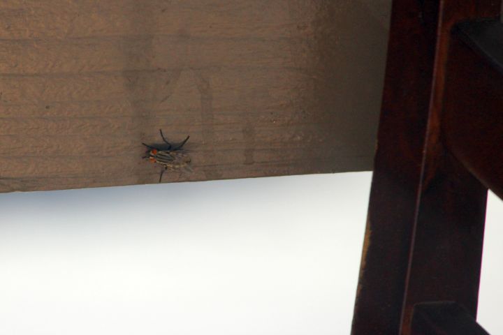 That is the biggest fly I've ever seen. But just taking a picture by the chair doesn't really show how big it is; I need something to show scale.