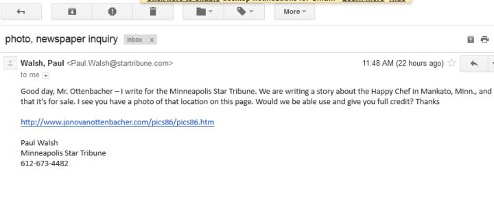 This newspaper reporter emailed me asking if he could use my picture for a story in the Minneapolis Star Tribune.