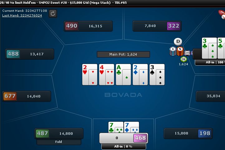 Then all-in with 77 against a flopped straight.