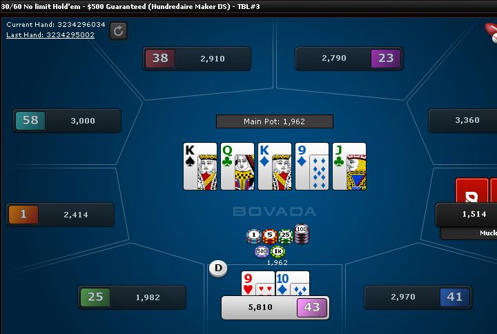 I called his river bet and thankfully he didn't have a K.