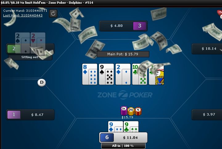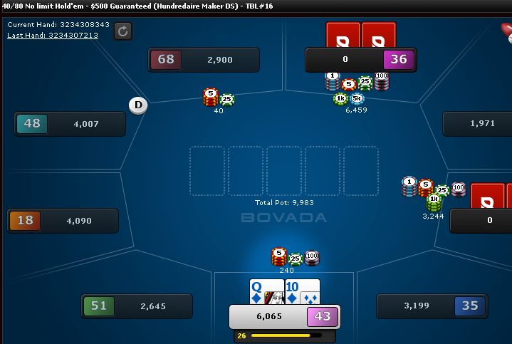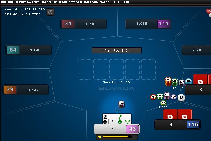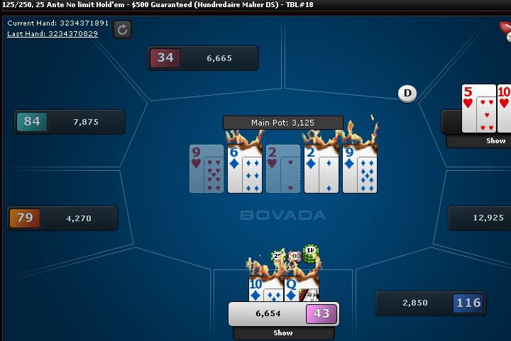 Onto the next tournament. This time I hit my nut flush on the river and he even raised me; nice.