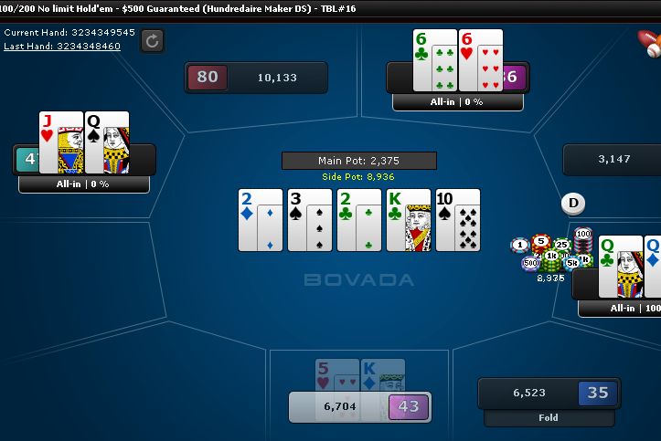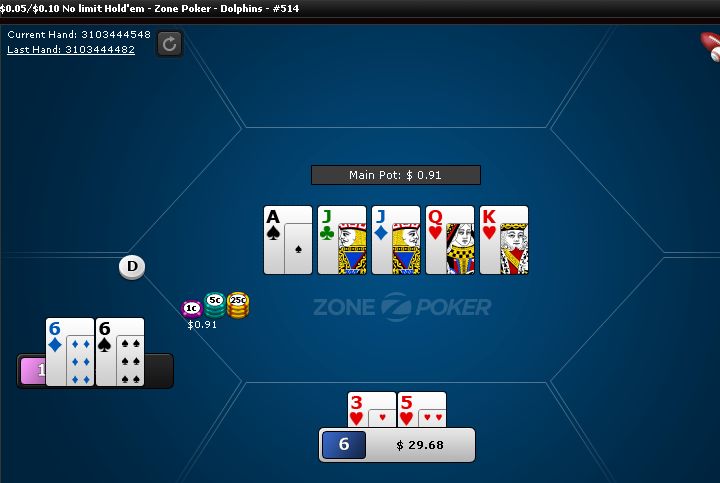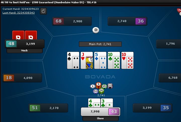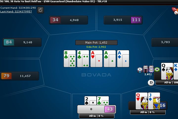 I have quads. That's nice. I was hoping he'd have an A or K and call me, but he folded.