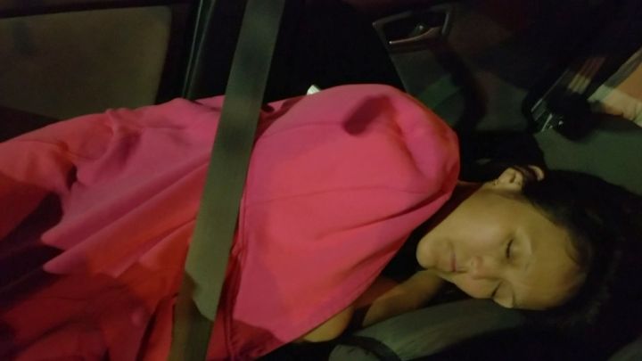 It was hot and sunny on the drive back home so Ogii covered up with a hoodie.
