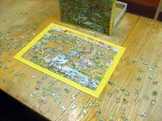 A couple of us worked on a jigsaw puzzle, which I haven't done in years. And I remember why; I got a headache from staring for all the tiny details.