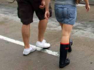 I don't know if these boots were supposed to be functional, but it wasn't raining that much, and if they're supposed to be fashionable, they're horrible.