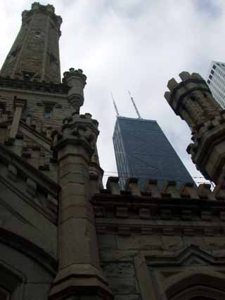 The Old Water Tower, which survived the 1871 fire, and Center Hancock.