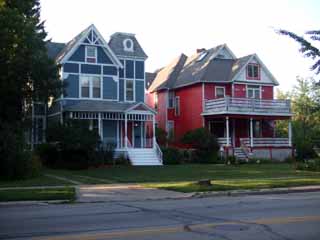 These weren't his homes, but I still think it was neat how they're side by side and two different solid colors.