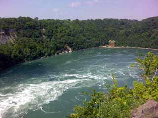 Farther down stream from the falls is the whirlpool. After some rapids, the water circles around before continuing. There is a little tram that goes across, but both points are on the Canadian side.