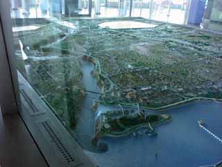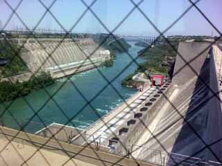 A model of the entire system. The falls are at the bottom and the power plant is at the top. There are also tubes that run across the town they use to control how much water goes over the falls to reduce erosion.